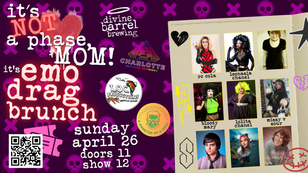 Join us for Charlotte Gaymers Network’s CGN Drag Brunch! This is our monthly drag brunch event and you’re invited! Presented by the Charlotte Gaymers Network and LOC Productions! This is an event you won’t want to miss! This month, we’re featuring the talents of Charlotte’s best drag entertainers! Buy tickets soon, because we will hit capacity.